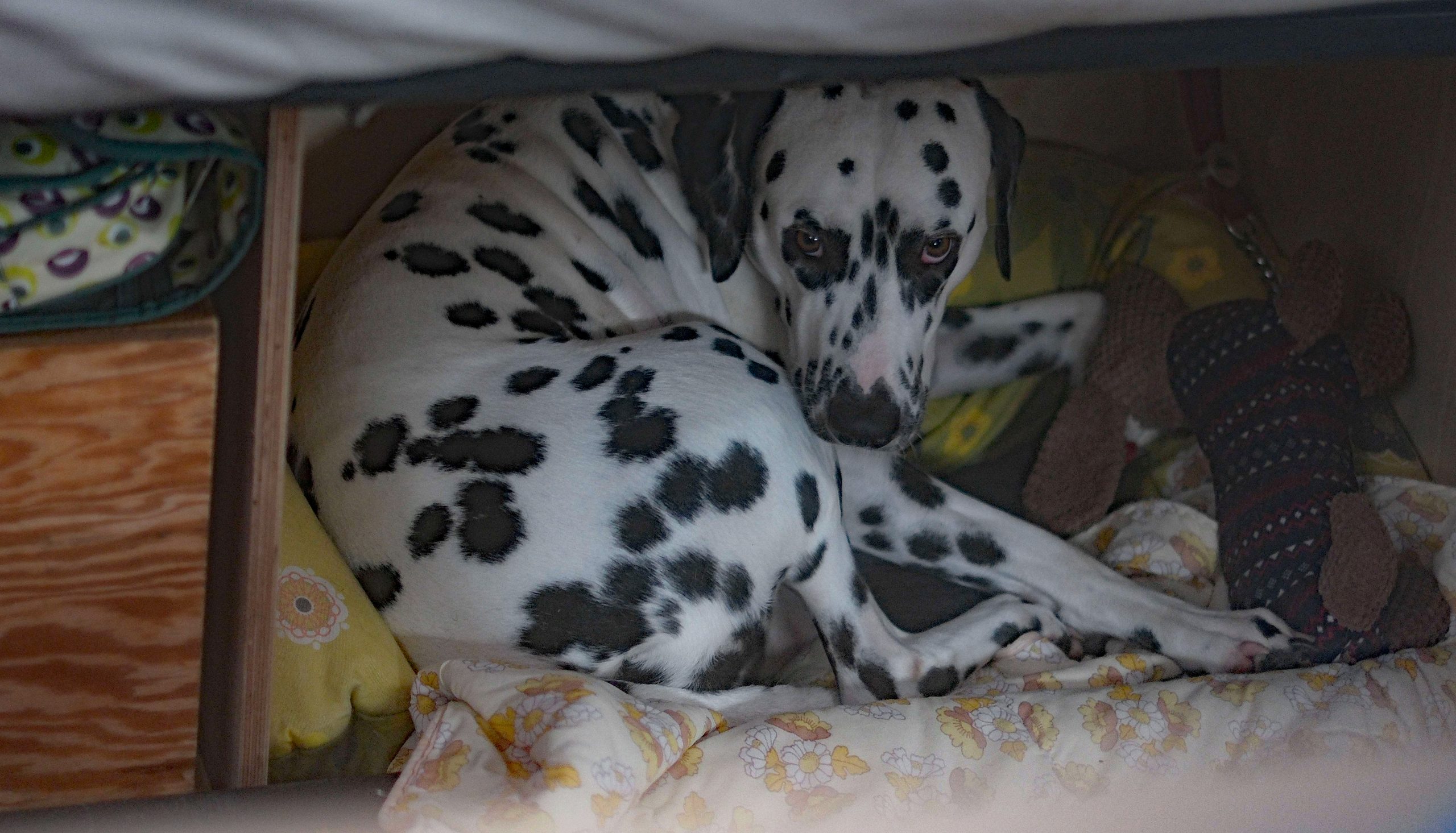 Für Caja wurde eine Hundehütte eingebaut und die Begeisterung hielt sich jedoch in Grenzen. Es bedurfte viel Überredung mit Leberwurst sie dort zu platzieren.